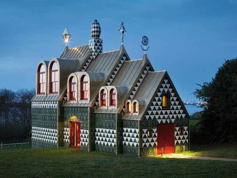 on 17 August 2015Created by artist Grayson Perry in collaboration with FAT Architecture, A House for Essex is ‘a Taj Mahal on the Stour’, its interiors charting the life of Essex everywoman Julie Cope, and is her final resting place. Commissioned by Alain de Botton and joining Living Architecture’s portfolio of holiday lets, the building is not only FAT’s final work, but a suitably ‘bonkers’ addition to the north Essex landscape