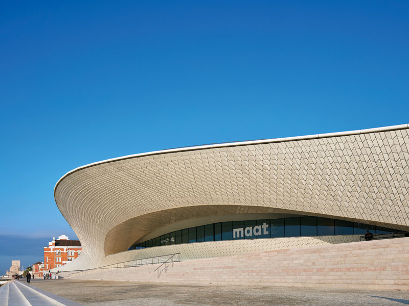on 22 December 2016MAAT has opened a curvaceous new waterfront building by Amanda Levete’s practice AL_A. It transforms the riverside, reframes the idea of exhibition space, and reconnects this edgeland with the city behind it