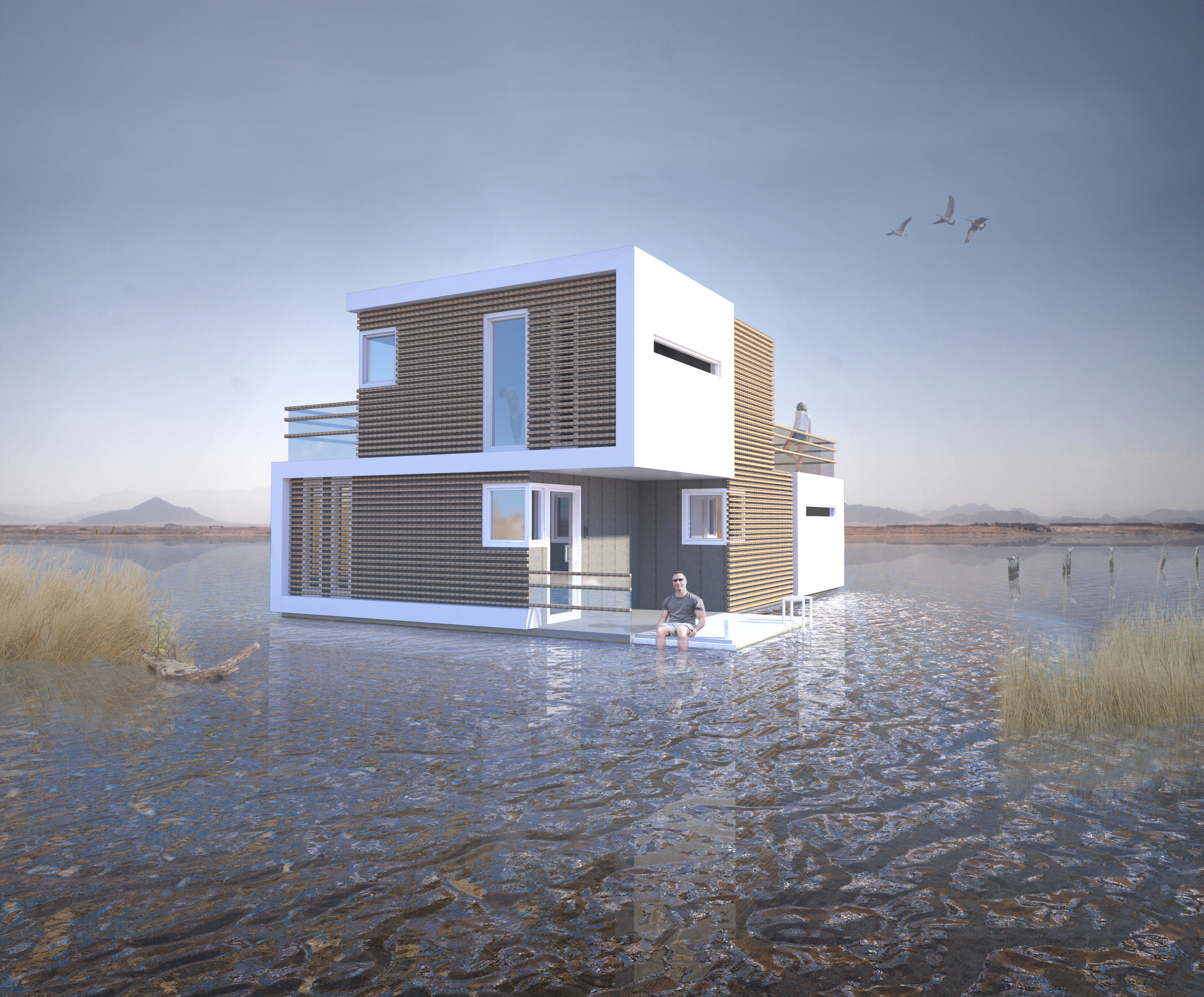 on 13 July 2016A floating house has been designed by Amsterdam-based Studio OBA which is made to break apart, allowing unhappily married couples to be able to split their home in half and stop residing together.