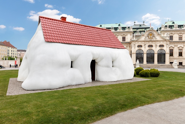 Erwin Wurm's Fat House installed outside Baroque Palace in Vienna