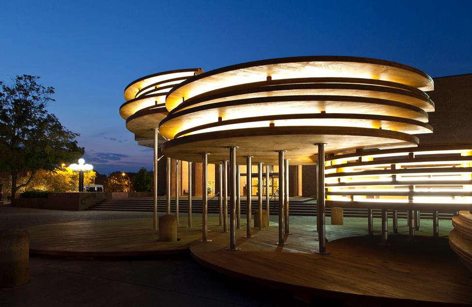 on 15 November 2017The Conversation Plinth, by architecture and design firm IKD, was unveiled at the 2017 Exhibit Columbus exhibition to spark conversation about historic Columbus and hardwood CLT.