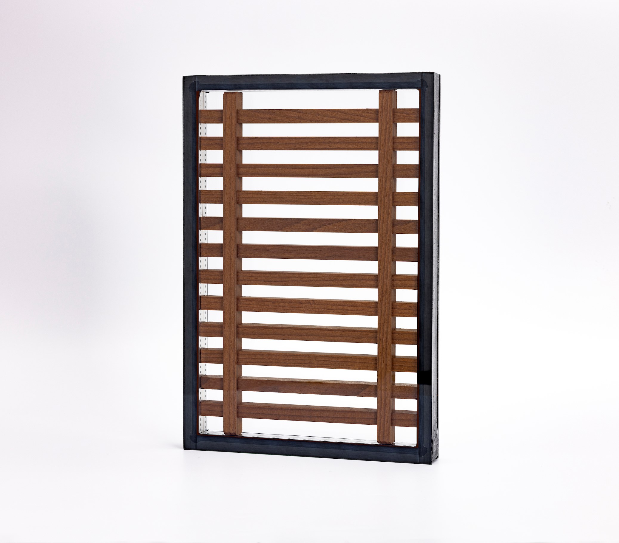 Insulating glass incorporating the OKAWOOD Beech louver grid from Okalux Glastechnik