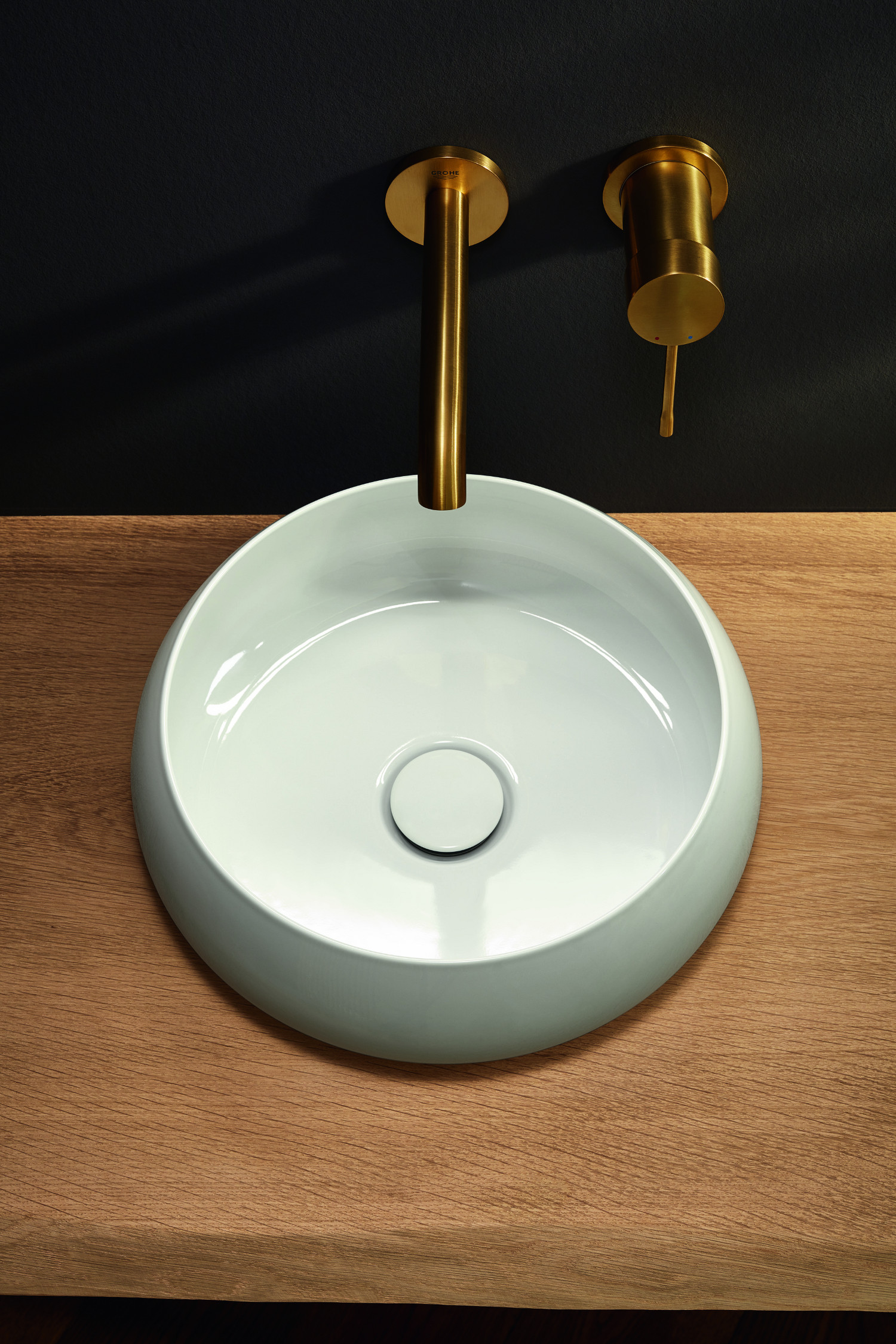 With no beginning and no end; no edges or corners: the circle is the most perfectly balanced figure in geometry. The BettePond Silhouette combines this perfect form with the perfect material in the bathroom – glazed titanium steel.