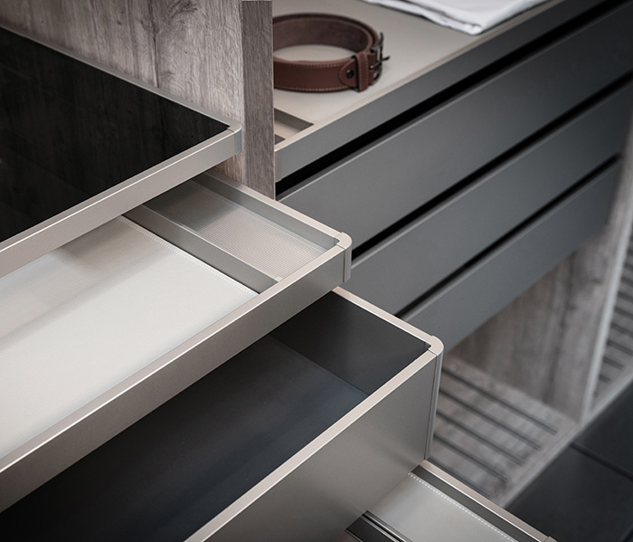 The combination of functionality and design makes our system perfect for applications in different environments, from the walk-in closet to the kitchen.