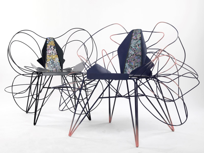 Yejoong Choi will showcase its latest series of maximalist chairs, this project is called ‘Kkoch-Galam’ meaning ‘a river with flowers’. Yejoong’s project brings new life to traditional Korean crafts, namely lacquer and shell inlay, and shows how these specialists techniques can be applied to contemporary design. The collection has a seasonal theme, and each chair is named after each season. The shell inlay of each seat represents flower blossoms, typical of each season, falling on the water’s surface.