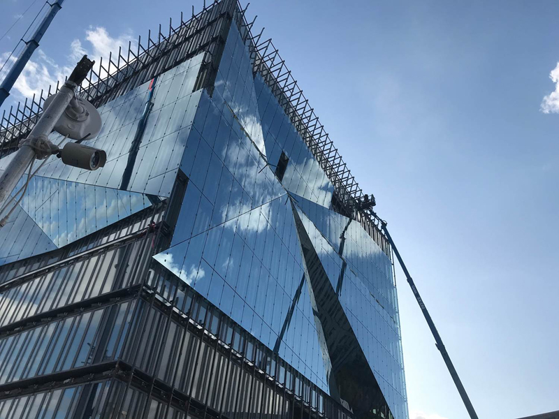 Designed by 3XN Architects, cube berlin has a fully glazed, double skin ventilated façade not only meets the aesthetics required by the architect, but also meets the high structural and energy performance requirements. Due to the combination of glass used in the façade, the aesthetics are visually appealing, reflecting the building’s surroundings on all sides and dynamically changing its appearance depending on the viewing angle, weather and time of day.