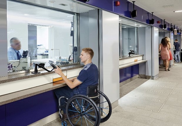 Their involvement with The Elizabeth Line was no different. Design for the ticket offices and customer information facilities were designed with inclusivity from the start to ensure that they were compliant with the Equality Act and that no retrofitting was needed in future. A two-tier counter system, which is accessible by both ambulant standing and wheelchair users, and people of short stature was fitted into surface stations across the line. A DFA (design for all) cash transaction tray and a chip and pin extendable arm further address the need for accessibility for all, as well as a roll top type cash tray that removes any unnecessary under counter knee obstructions.