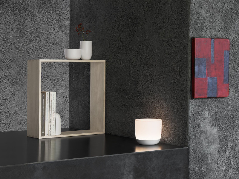 An adjustable-height pendant lamp hangs down inside a frame, while a wireless version features inductive charging functionality to power a luminescent lamp. Normally laying on the charging dock, the lamp can be moved around freely when lighting is needed elsewhere. The meta-lamp Gaku is a frame that selects and accentuates the domestic landscapes.