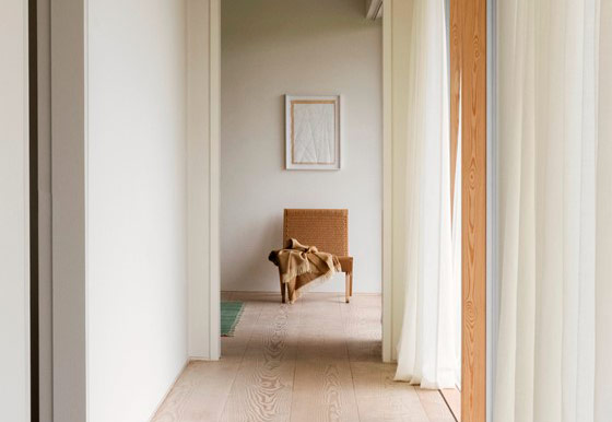 This private villa in Suffolk was designed by Norm Architects. The home's transparent design and natural materials blend into the surroundings and leave a harmonious impression on the landscape. The floors in Dinesen Douglas Natural emphasize nature's visit to the house and create a special calm and simplicity.