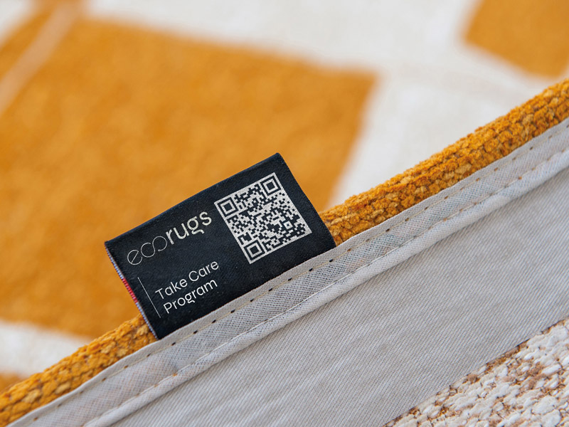 Take Care uses a QR code on the label to set up a collection and return journey that sees unwanted rugs returned directly to Louis De Poortere, rather than enter recycling schemes where the products might well be downcycled. On arrival, Louis De Poortere will assess each rug for condition and either select reuse through second-hand sale, or recycling into raw material for a new Ecorug. Take Care makes the process easy and that’s essential to Louis De Poortere’s model of circularity for its rugs.
