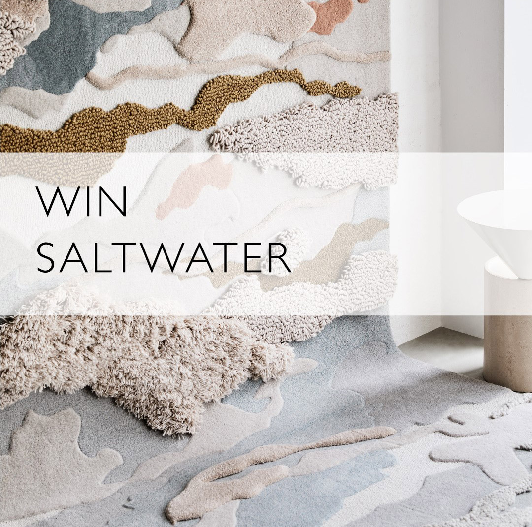 Our biggest giveaway yet - the award-winning Saltwater rug could be yours! Inspired by a beach stroll at sunset, the design translates organic sand, sky and coral formations into functional textiles.