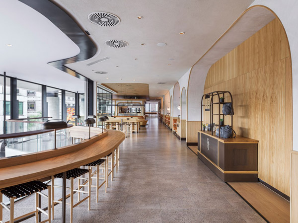 Known as the ‘foodie heart’ of 22 Bishopsgate, its selection of bustling food counters makes it a hub for workers looking to drink coffee, take lunch breaks and host meetings. However, being a lively, open hospitality space, the clink of cutlery and energetic conversation would mean that the café space was at risk of excessively high noise levels, which left unchecked would create an uncomfortable drinking and dining experience for guests.