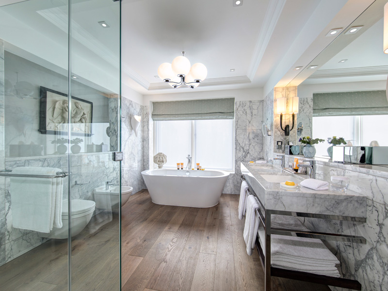 24 February 2021The Balmoral, a Rocco Forte hotel in the heart of Edinburgh, has been extensively refurbished over recent years, with the most recent development being a new look for one of its signature suites, The Glamis. The suite has been designed by Olga Polizzi, Rocco Forte Hotels’ Director of Building & Design, and features a Bette freestanding bath, made from glazed titanium-steel.