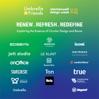 20 May 2024From 21 – 23 May the Umbrella Furniture and Wagstaff central Clerkenwell showroom transforms into a hive of knowledge exchange centring around the core theme of RENEW | REFRESH | REDEFINE at Clerkenwell Design Week 2024. Discover some of the latest designs and brands that are leading the way in Circular Design and the art of the possible when it comes to redefining existing furniture.