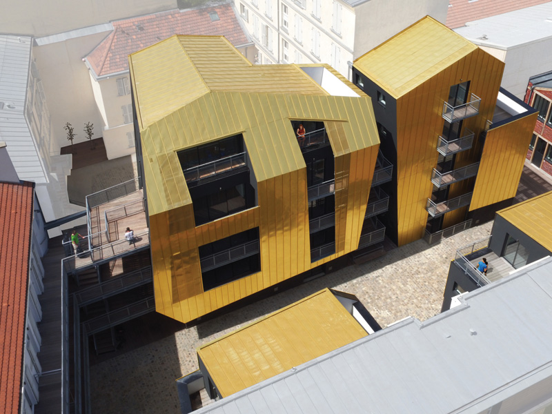 5 April 2018A bold and unusual social housing project in Paris by Metek Architecture has an eye-catching golden exterior — but it’s hidden away in two redesigned off-street courtyards