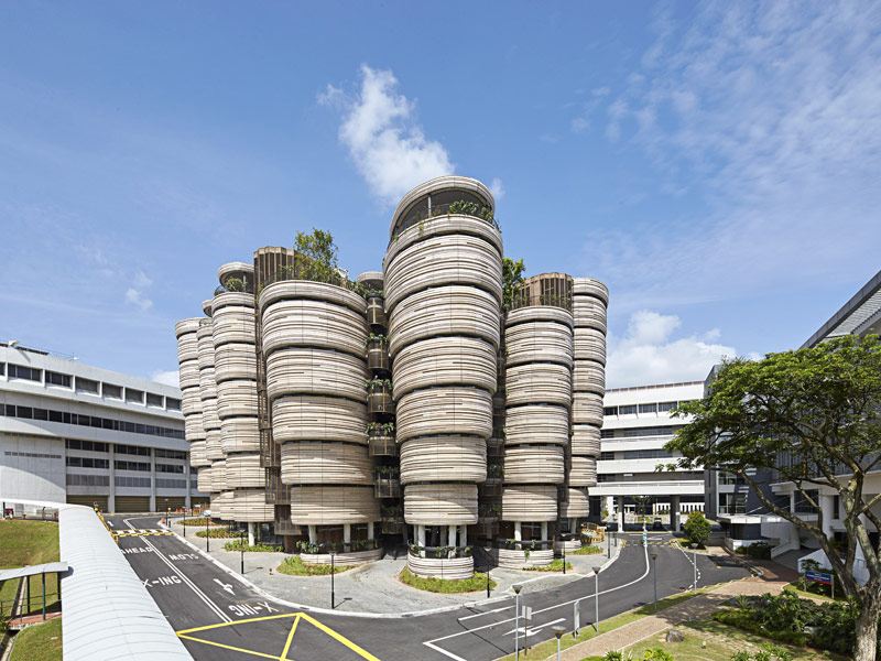 15 June 2015The Thomas Heatherwick Studio has just completed a building for the Nanyang Technological University in Singapore, with the specific intention of it not being anything like any other university building in existence so far. With the Learning Hub’s stacks of circular spaces, its nickname of Dim Sum Towers, given by the students, seems particularly apt