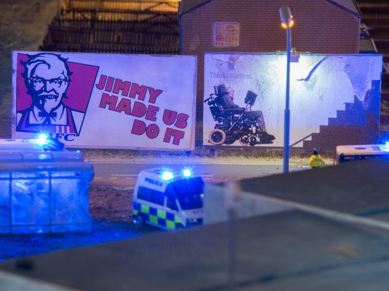 10 January 2014With the help of 5,000 police officers and a clutch of journalists, artist James Cauty has created the aftermath of riot and mayhem, complete with a burning church, collapsed overpass and, er, a cow in a block of flats... All the figures are miniatures but, far from the rural idyll of old model villages, Cauty’s diorama makes a political statement about societal freedom and state control. After opening under the arches at Hoxton Station, Aftermath Dislocation Principle Parts I & II can are on show at Piet Hein Eek, Eindhoven until 15 March