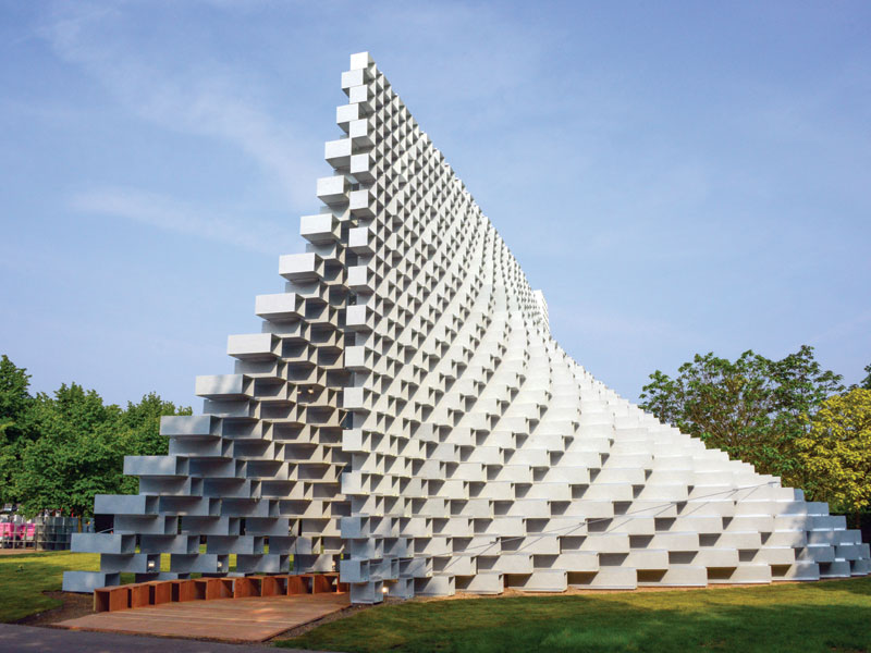 20 July 2016The Serpentine Galleries has expanded its summer architectural programme this year with not just one but five pavilions in Kensington Gardens. Danish practice BIG celebrates a new outpost in London with a vast, pixelated, cathedral-like structure, while Kunlé Adeyemi, Yona Friedman, Asif Khan and Barkow Leibinger have each created a summer house responding to William Kent’s 18th-century folly for Queen Caroline
