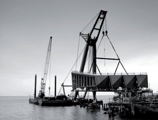 The 170-tonne structure was made off site and was transported by barge before being lifted into place at the pier head by a 400-tonne crane.