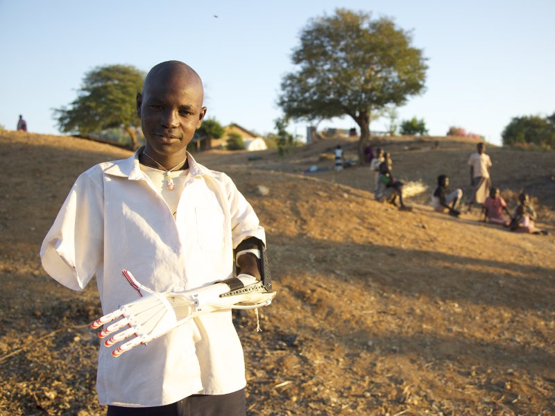 Travelling to South Sudan, Ebeling worked with a US surgeon Dr. Tom Catena to set up a special lab in a local hospital. Using consumer-grade 3D printers, they created prosthetic arms designed to be simple and affordable enough for anyone who needs one (the one Daniel received cost about $100 to produce).