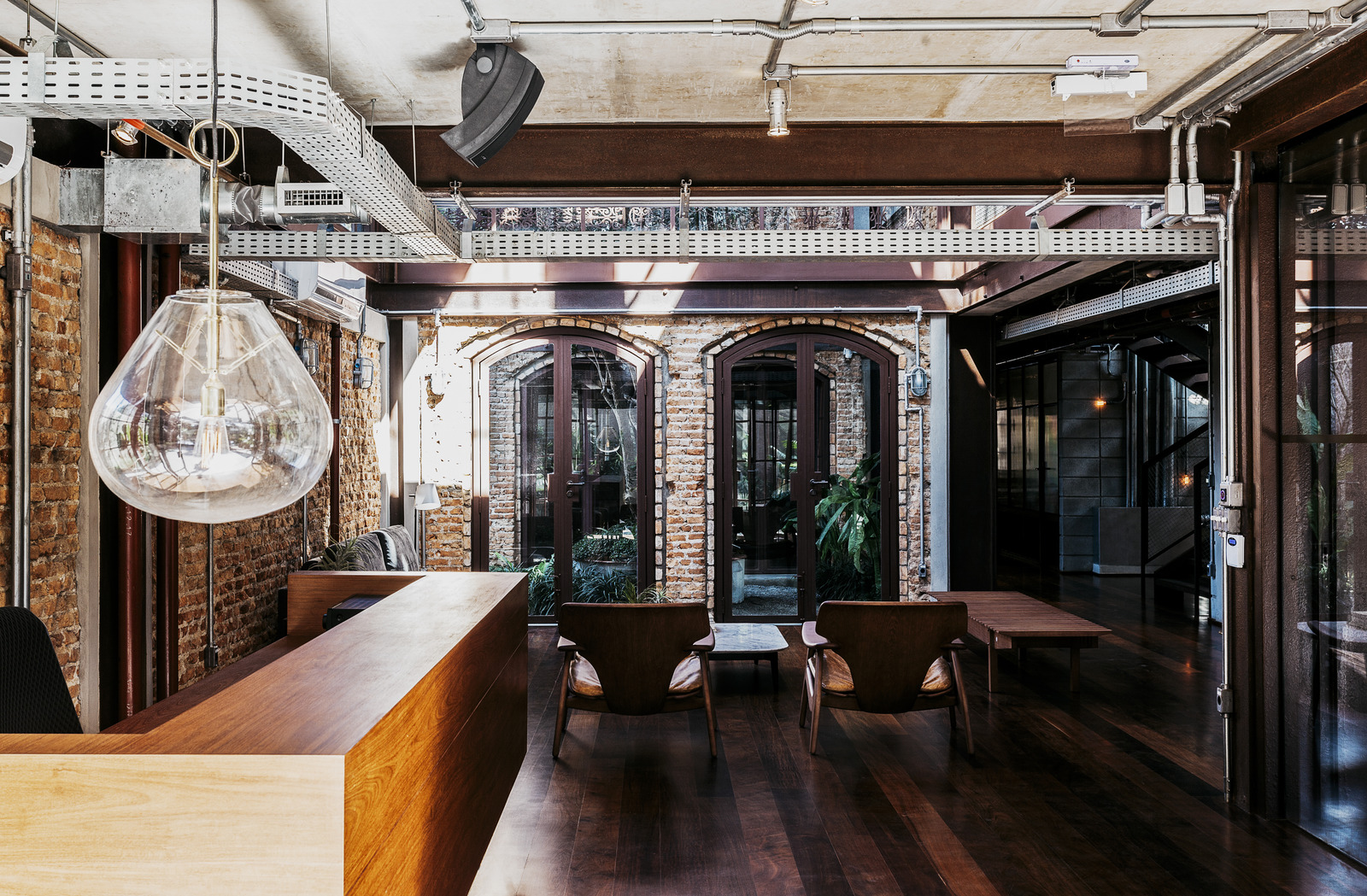 The architecture of the two-story AKQA Casa promotes a domestic system and character creating a space that includes gardens and patios with an elaborate collection of brise-soleil created from vintage iron gates and railings.