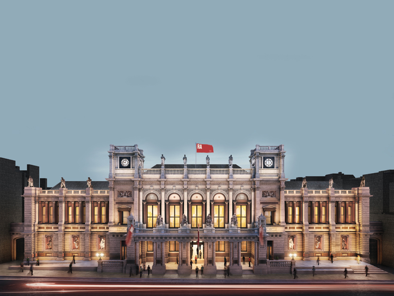 Originally, the RA set up home in 1768 in Pall Mall with a gallery just 10m long. Twelve years later it moved to Somerset House in the Strand where it remained for half a century before moving to share premises with the new National Gallery in the 1830s. Designed by William Wilkins, it was one of the first buildings on what was to become Trafalgar Square in May 1844. After 30 years in the east wing, the RA moved to its permanent home at Burlington House, a 17th-century building designed by Hugh May. In 2001, it acquired 6 Burlington Gardens, an impressive example of mid-Victorian architecture, designed by James Pennethorne for the University of London, and one of the grandest unrestored buildings in central London. From 1970, it was the British Museum’s Museum of Mankind before that subsequently returned to Bloomsbury. The link between the two buildings is at the heart of overall redevelopment.
