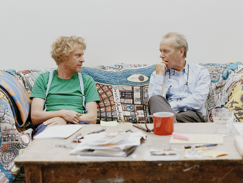 Main picture: Grayson Perry (left) talks to Martin Amis