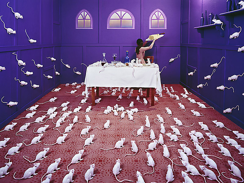 In my work, I reconstruct my feelings and situations in relation to the society. The background sets and symbolic props and objects in them are to reenact the scenes in a metaphorical way. The set is 360x600x240cm in dimension and I recreate it as a narrative space by painting it and filling it with hand-made objects myself. By building the space with my personal, psychological experiences in everyday life, I try to visualize my inner world of which the meanings cannot be value-judged. My work, in essence, records my concerns and process of growing up. It narrates and dramatizes my life stories.