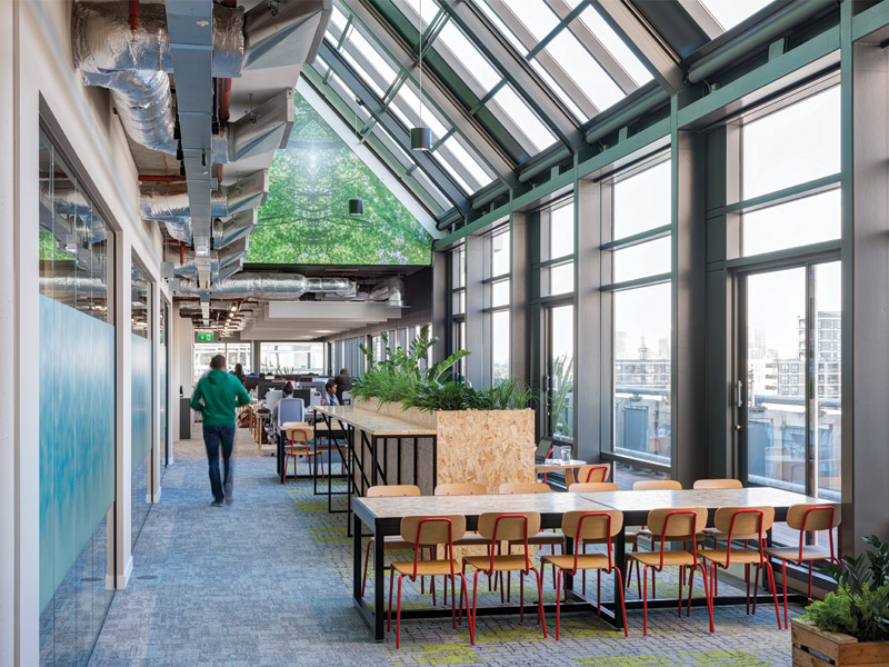 Biophilic design on the floors include Flotex patterns in breakout rooms