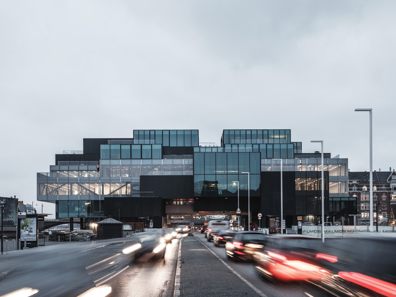 Blox is not the first building along this particular stretch of quayside to have the ring road running through it, either. Right next door, the Black Diamond extension to the Royal Library (designed by Schmidt Hammer Lassen, completed in 1999) also spans across the road, incorporating it into the complex.