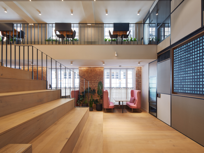 ‘Improving the connection and flow for single occupancy was a challenge,’ explains Charlotta Faulkner, design director, Bluebottle. ‘Strategic space planning set the backbone which led to an extensive programme of structural works to vertically connect all floors throughout the space. The central staircase acts as the heart of the building, it encourages movement and meetings for its occupants and gives the building a sense of openness and transparency.’