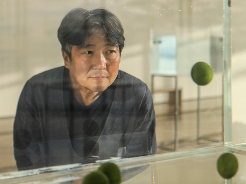 Of the two further commissions, one riffs off an earlier experiment devised for a residency in the Austrian Alps. He discovered that these prominent mountains were once coral reefs, fully underwater, and inhabited by fishes. So he worked with local children to create fish kites, which they then flew in the sky, repopulating the mountains with sea life. Here, he decides to populate the skies around Centro Botin with flying people, getting locals to draw full-length portraits of themselves and turning them into kites (Flying People (Santander) (2024)). The kites and their filmed flight are shown at one end of this airy gallery floor. At the other we have the citrus of the exhibition’s title. Learning that the museum’s president, Vicente Todoli, has a citrus farm in his home region of Valencia, Shimabuku decided to articulate a question that had recently intrigued him – when washing citrus fruits, he noticed, some of them float, others sink. So in his work Something that Floats/ Something that Sinks (2024), he placed large glass tanks around the end gallery. They are filled with perfect green limes. And indeed, some are floating and others sinking. But – wait a moment – some appear to be moving. Is that possible? The caption suggests that maybe limes can swim. In conversation later, he admits to inserting a current, but only to discover if that would trigger movement. ‘It’s really about discovering something,’ he says.