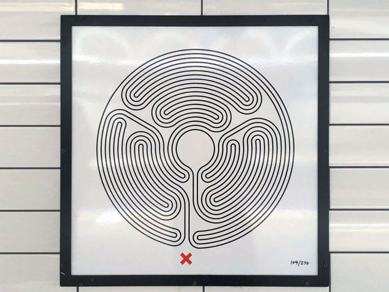 And does it have impact? She would say so. Around 20 per cent of the people canvassed say they have noticed either posters or artwork on their journeys – 20 per cent of six million a day isn’t bad. One of the most popular works commissioned is Labyrinth, from artist Mark Wallinger. He created a series of 270 ceramic tiles, each of which features a different maze pattern on it, which are embedded in all the stations. She says: ‘It has so truly been adopted into the fabric of London. We have some wonderful obsessives that tweet us every weekend – they go and hunt them all down.