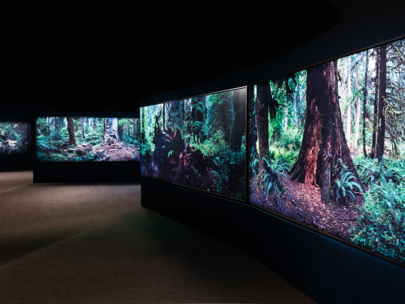 My hopes were high as I entered Gallery 1, which is dedicated to the first of the exhibition’s two themes: ‘Tranquillity’. There are certainly treats in store, the foremost for me being a dark sequence of rooms hosting Chrystel Lebas’ multi-sensory installation Regarding Forests. It features her long-exposure photographs of different, ancient woodlands – so vivid, they seemed almost three-dimensional – combined with an aromatic diffusion spreading throughout the space, evoking a gentle, simulated scent of a forest floor after rain. Soft, tree stump-like stools are provided for extended contemplation. I also appreciated Toby Glanville’s photographs of allotments; bathed in warm, late afternoon summer sunlight, they absolutely radiated that wellbeing and satisfaction to be had from a day spent in good weather, in the open air, tending to plants and appreciating nature.