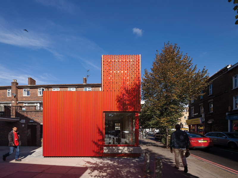 A shiny red structure is providing exactly that service, just off the Old Kent Road – the cheapest road on the Monopoly map and long a byword for urban deprivation. East Street Exchange is a small but extrovert extension to East Street Library that enables this well-used but underfunded Sixties lending library to offer the kind of vital multifunctional, community-facing meeting, teaching, work and event spaces that are increasingly being specified in the new 21st-century libraries springing up around the nation.