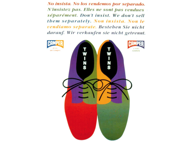 The attitude that prevails through all of its outputs displays characteristics of lightness, play and humour, with a focus on the role of the unexpected, positioning Camper as the non-conformist.