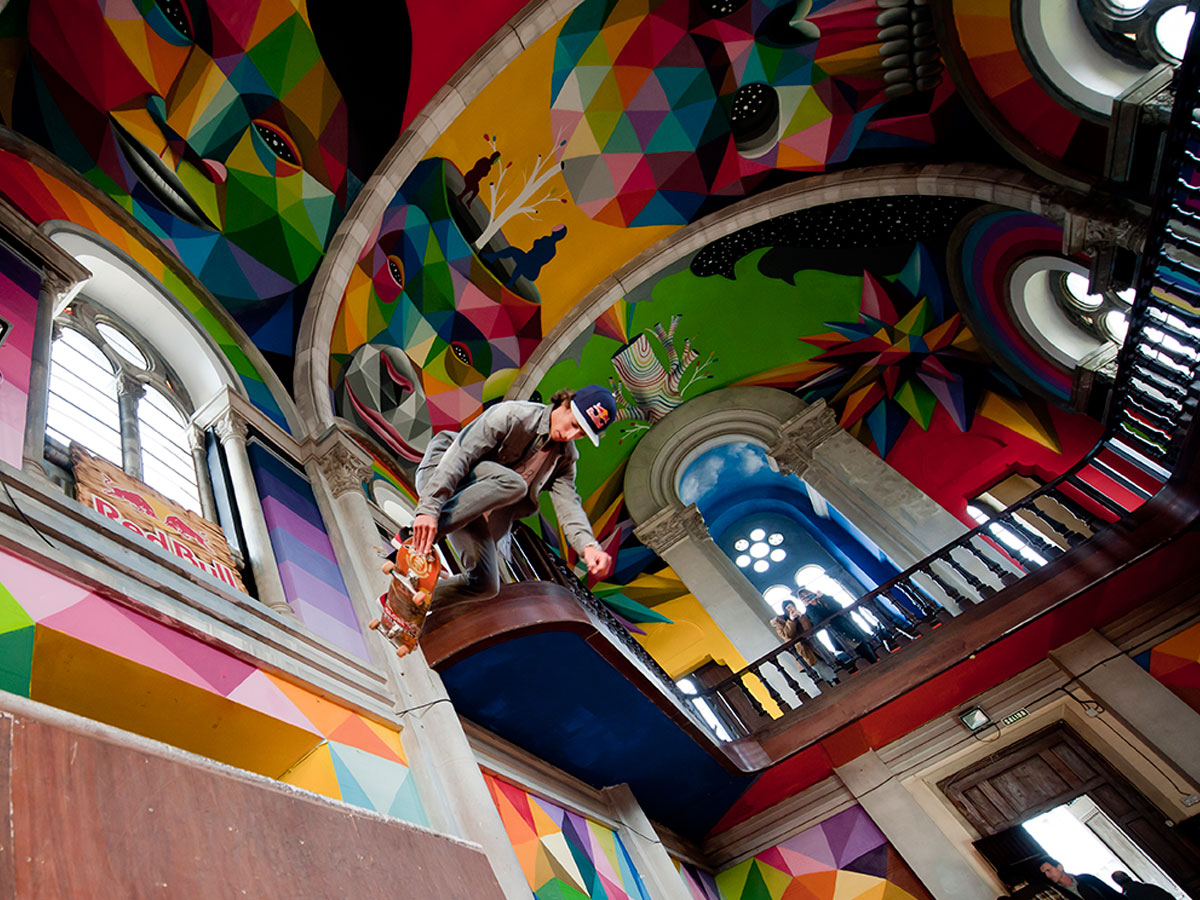 Back in October 2015 Okuda kick-started the project 'Kaos Temple' in order to transform the 'Iglesa Skate de Lanera (Asturias)' into a real temple of culture, where art and skate collide.