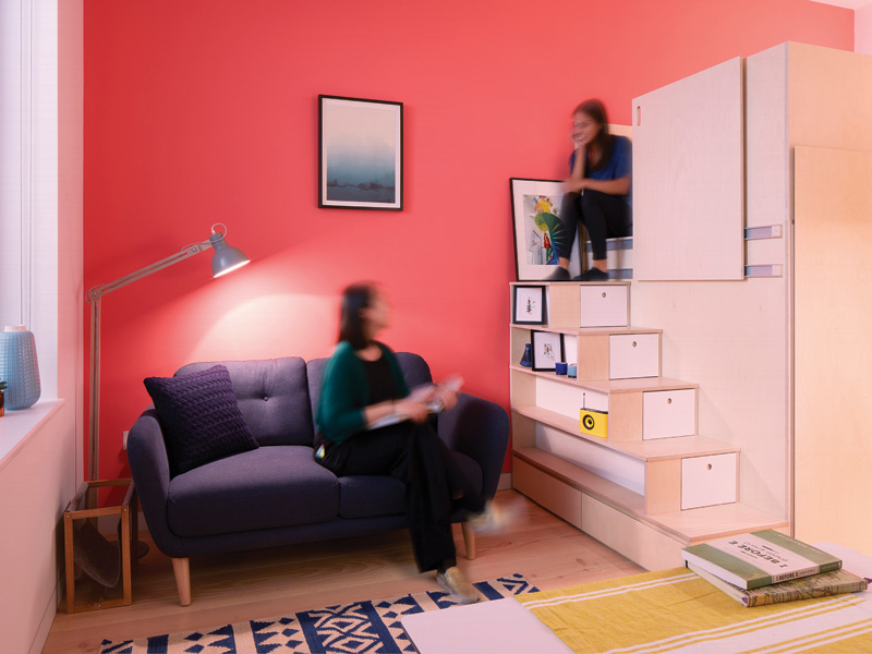 In creating concepts for limited-space living, there are plenty of interesting examples to be considered from beyond the residential sector. Whitbread is trialling a new hotel concept in the form of a ‘scaled down’ version of its Premier Inn brand, called ZIP by Premier Inn. The new no-frills hotel concept opens this year on a 138-room site in the Roath district of Cardiff.