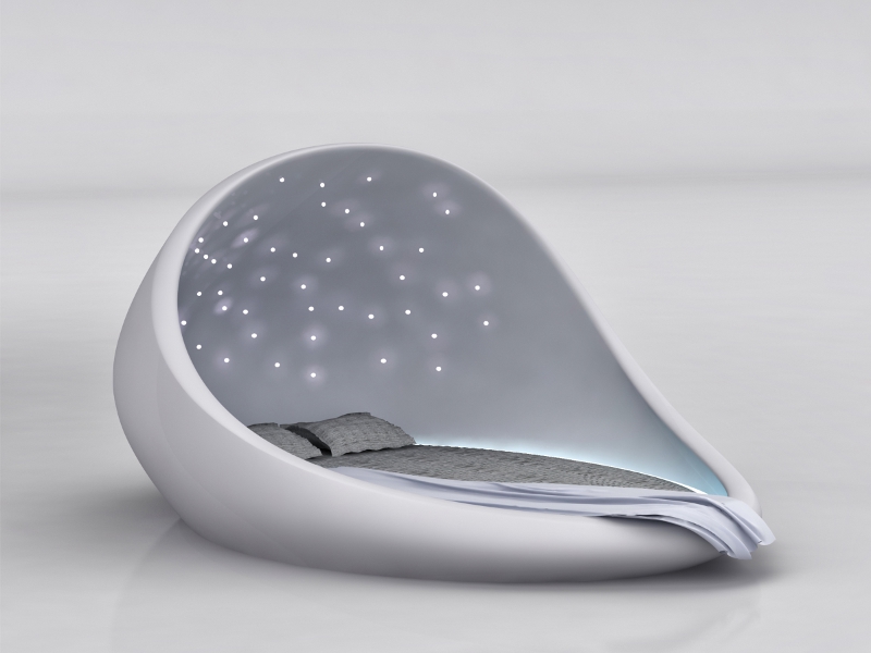 High-tech bed by Russian designer Natalia Rumyantseva mimics the night sky, while also playing soothing music and even has a scent dispenser for a truly immersive sensory experience