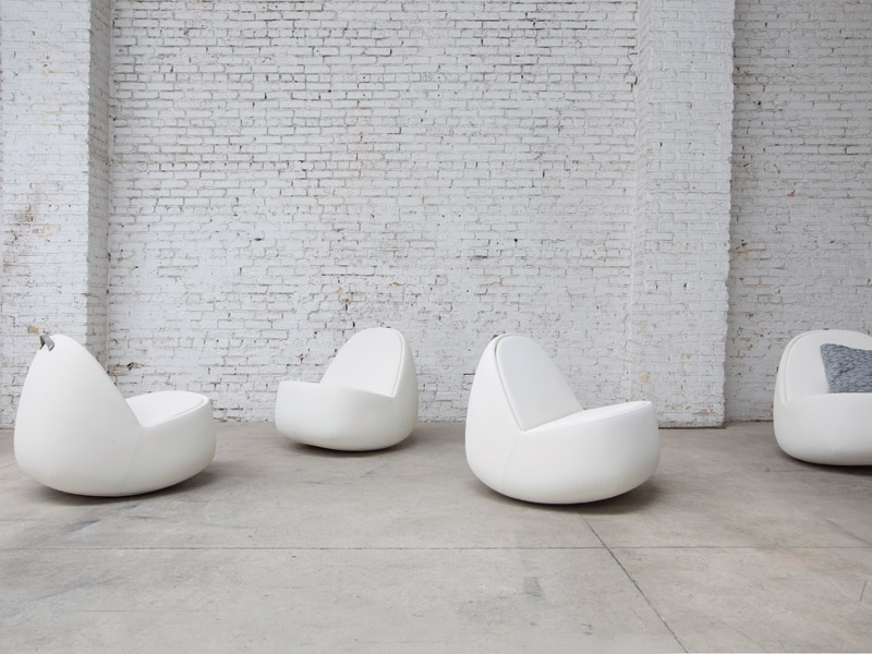 Rock, by Yorgo Lykouria of Rainlight Studio, was part of a collection designed for Allsteel called Townhall. Rock is so called not just for the inspiration Lykouria took in natural forms, which he describes as ‘communicating a sense of freedom’, but more simply because the rounded base of the seat means the chair rocks gently. However, it is not the repetitive motion of a rocking chair, but a responsive movement that occurs as the sitter adjusts their position. Though relaxing, the chairs are made for a work environment, responding to the more informal and idiosyncratic ways we work today. They have a handle at the top and are lightweight enough to be moved around for informal meeting arrangements. This is achieved by making them hollow, ‘the way a kayak is made’, as Lykouria explains in a video introducing the product.