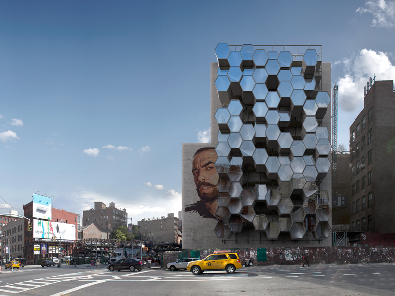 By contrast, the latest technology, 3D printing, is proposed by architect Andreas Tjeldflaat of Framlab, whose Shelter with Dignity project proposes geometric pods that can be slotted into scaffolding on the side of existing buildings like cells in a honeycomb. ‘I met with homeless people during the design phase to learn about existing needs and wants for shelter offerings, as well as gathering feedback on the evolving design,’ he explains. ‘Many of the people I met preferred to live on the street due to bad experiences in homeless shelters, revolving around a lack of safety, hygiene and theft. Shelter with Dignity responds to these findings by offering individual spaces that offer privacy and safety – a temporary, private space for sleeping and storing one’s belongings. Feeling that one has a home is a fundamental psychological need that current shelters are unable to provide.’