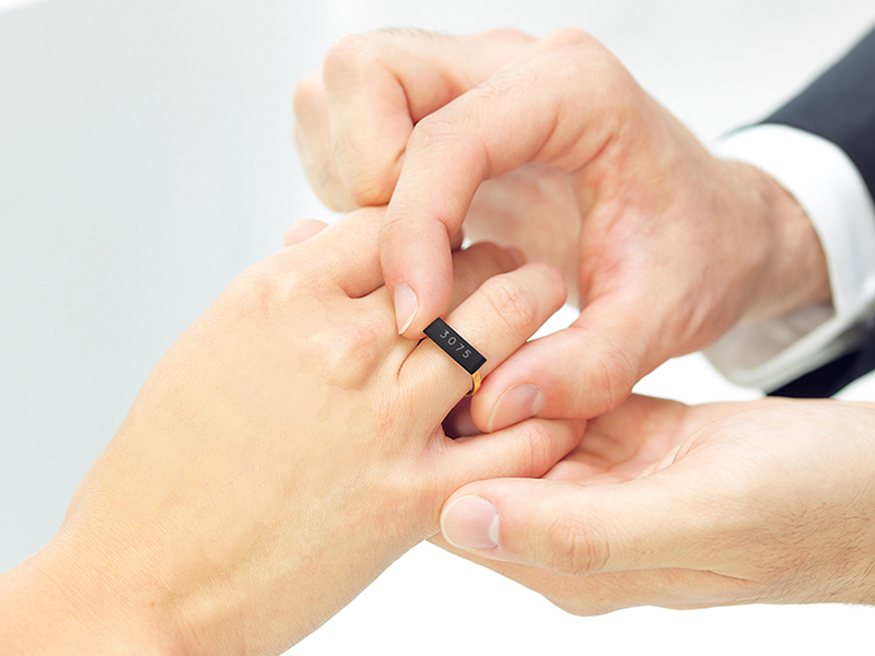 One of these is a ring which comes with a date which it set for the end of the marriage. Wang says: 'In the future, rather than being married for life, can couples decide how long they want to be married for? Can the marriage certificate be more like a love contract where terms are pre-agreed? And instead of using negative phrases such as 'divorced' or 'separated,' can marriages end more peacefully and happily? If so, perhaps the number on the ring would be far more important than how big the diamond is!'
