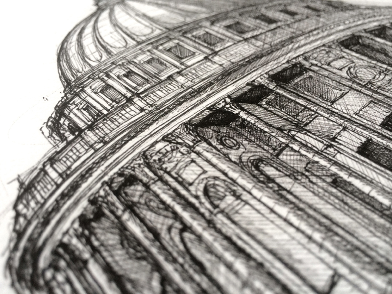 Chris Eckersley's dynamic drawings of the Pazzi Chapel in the Basilica of Santa Croce in Florence, as chosen by Trevor Flynn from Drawing at Work. Chris Eckersley is a freelance furniture designer