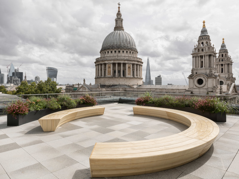 One of the key interventions is the reconfiguration of the ground floor, redesigning the reception space and opening up a new retail frontage. Spacious terraces added on levels 6 and 8 – paired with existing terraces on levels 4 and 5 – make the most of the uniquely close view of St Paul’s Cathedral, and further views across the City of London and beyond.