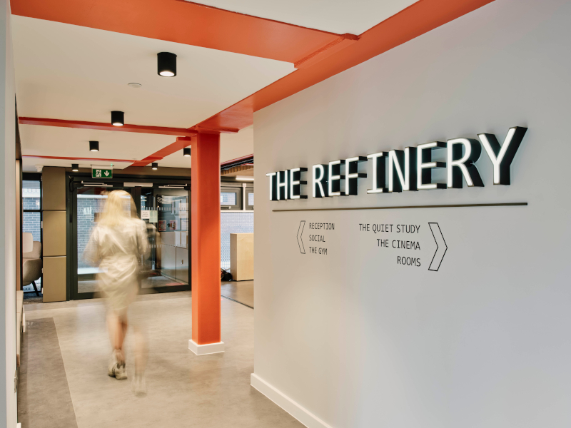 The Refinery is a 397-room student accommodation complex providing apartments, shared living spaces and a host of amenities. Developed by Gregory Property Group and operated by Fresh Student Living, the interior of The Refinery was designed by JS+P, who worked alongside AHR Architects and GMI Construction to deliver the project for Curlew Capital.