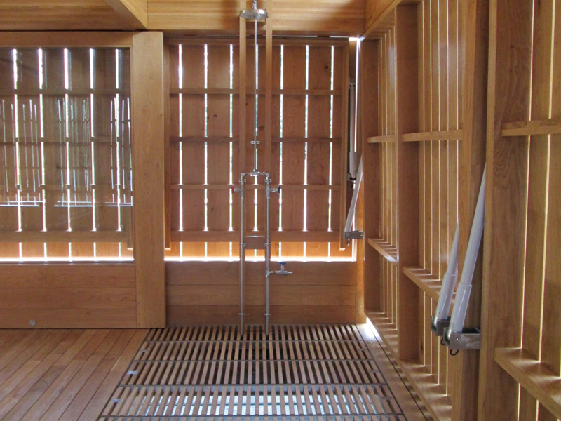 Niall McLaughlin's Fishing Hut intentionally allows sight through the salatted flooring of the water below