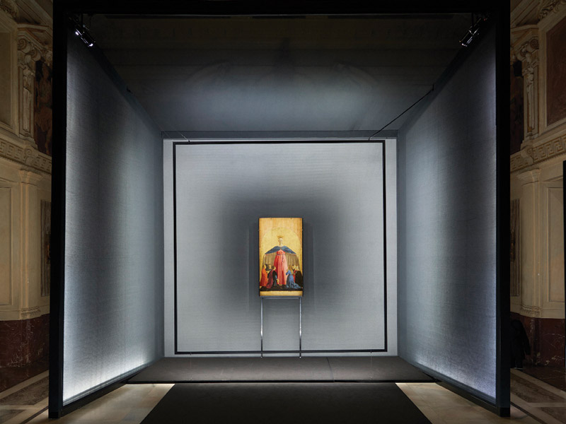 Rarely, if ever, are works of art so fastidiously lit, unless they are venerable, permanently displayed works (Da Vinci’s Last Supper springs to mind). However, Piero della Francesca’s masterpiece, Madonna della Misericordia, was recently accorded a similarly meticulous and thoughtful treatment when it went on display at the Palazzo Marino in Milan. The aim here was not only to illuminate the 15th-century painting – the central panel of a polyptych altarpiece – to best effect, but also to use both layout and lighting to prepare the viewer in stages so they might more fully appreciate the experience. ‘It was a narrative made of light and dynamism, which combined different heights and prospects in order to bring the visitors face to face with the painted panel,’ say Migliore + Servetto Architects, responsible for both design and lighting. ‘Adapting the eye and the mind to understand the structure and the genesis of a great masterpiece, this was the aim of the approaching path designed for the exhibition.’