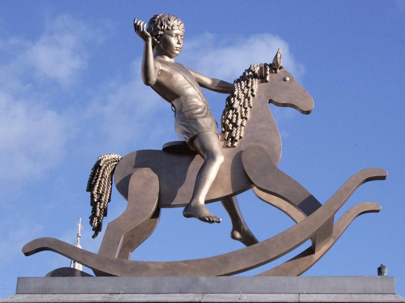 Covering a period where British art has been both at its profound, conscience-pricking best as well as its overblownl, self-indulgent worst, this show includes works by international and homegrown artists such as Mark Wallinger, Bob & Roberta Smith, Yinka Shonibare and most recently Elmgreen & Dragset. The early commissions (which were overseen by the RSA, before the job passed to a committee at the Mayor of London's office) include one of the finest - Rachel Whiteread's Monument (2001), a simple copy of the Plinth itself, inverted and placed on top. Though this piece did recall a rather austere mausoleum, mostly it just asked you to consider what was already there. It remains a pure, revelatory, and at least physically subversive work, firmly at the formalist end of a spectrum that runs through traditional figuration and surreal humour.