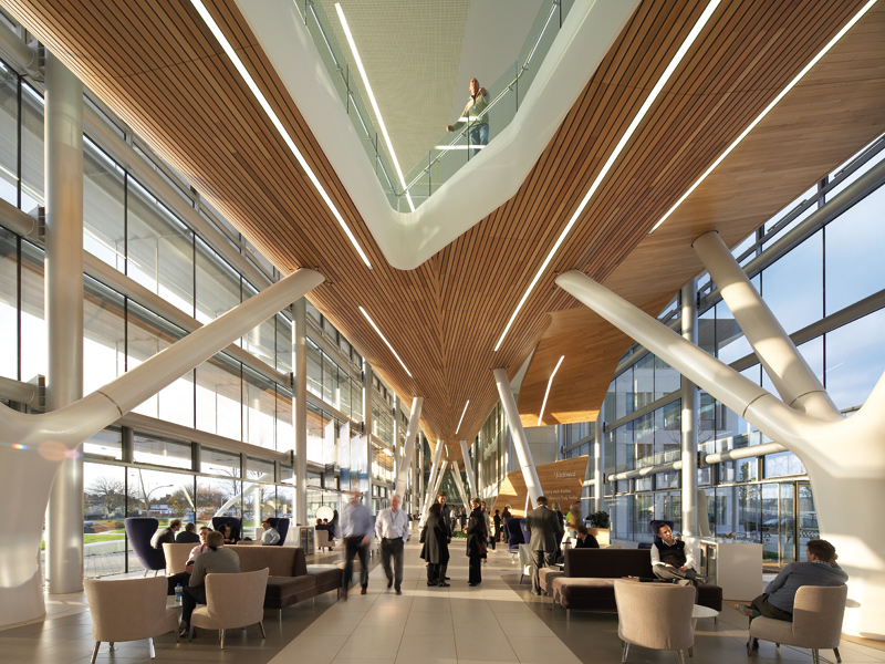 Circulation routes, both horizontally and vertically, should define the location of social spaces, collaboration zones and generally noisier areas. These are places where chance meetings lubricate the grey matter as well as the social and corporate cogs, where barriers are broken down and interaction has freer rein. Moving away from these interactive zones, you can define and design semi-quiet day-to-day space and super-quiet concentration areas.