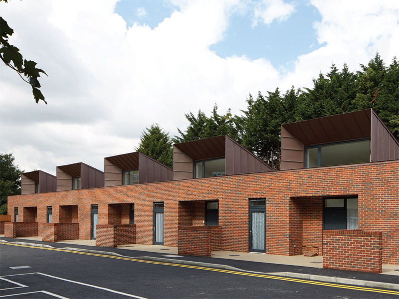 A modular two-bedroom design was arrived at that could be used across the borough. Each has a zinc-clad, saw-tooth profile and deep-set windows: here in a row of six homes in Coldbath Street